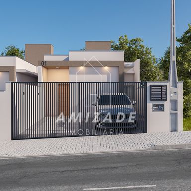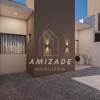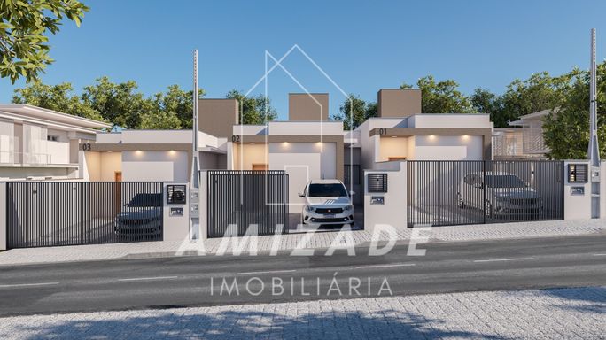 A casa geminada possui um total de 65 m², sendo dois dormitórios, uma suíte, sala e cozinha conjugadas, banheiro, área de serviço e garagem para dois carros.